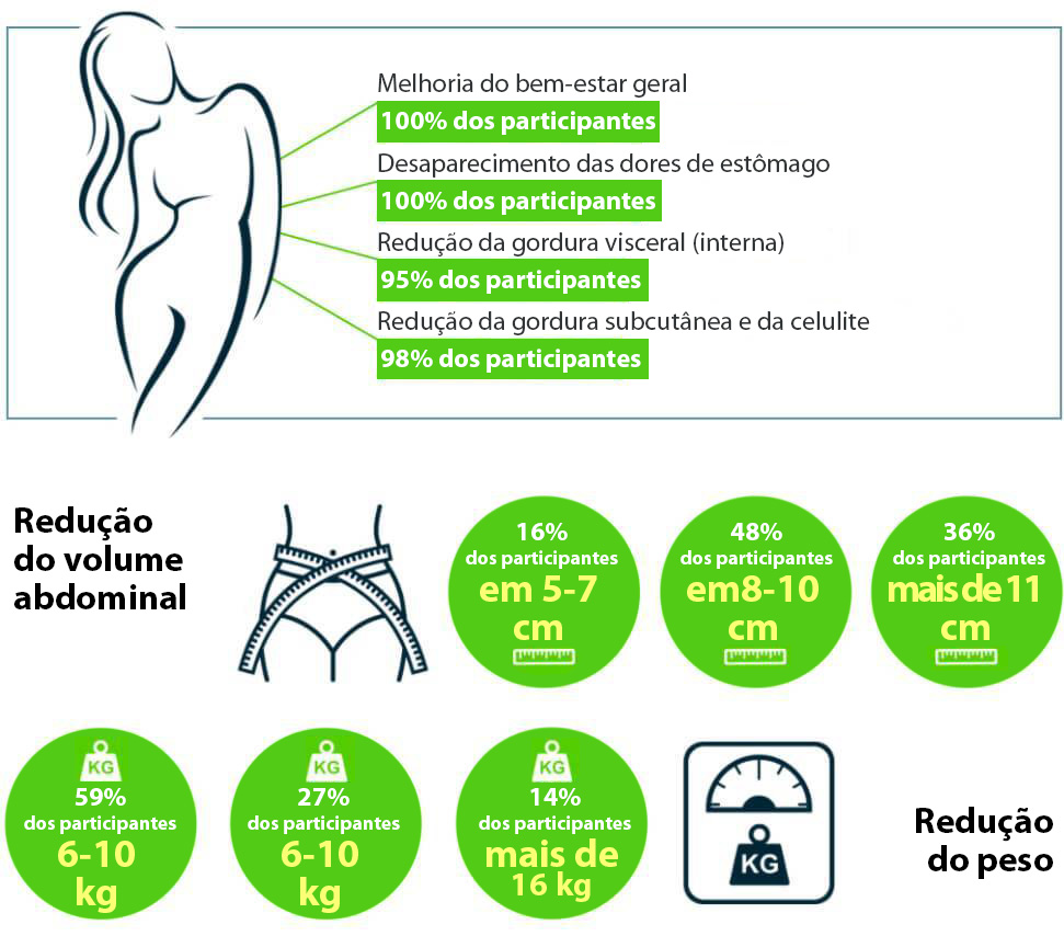 Em 7 semanas, pesará 90 kg e, em mais 12 semanas, pesará 70 kg! Garantimos que começará a perder peso a uma taxa de 10 kg em 7 semanas. Estes resultados são confirmados, sem sombra de dúvida, por estudos clínicos realizados com a participação de 27 000 mulheres e homens com idades compreendidas entre os 18 e os 75 anos.